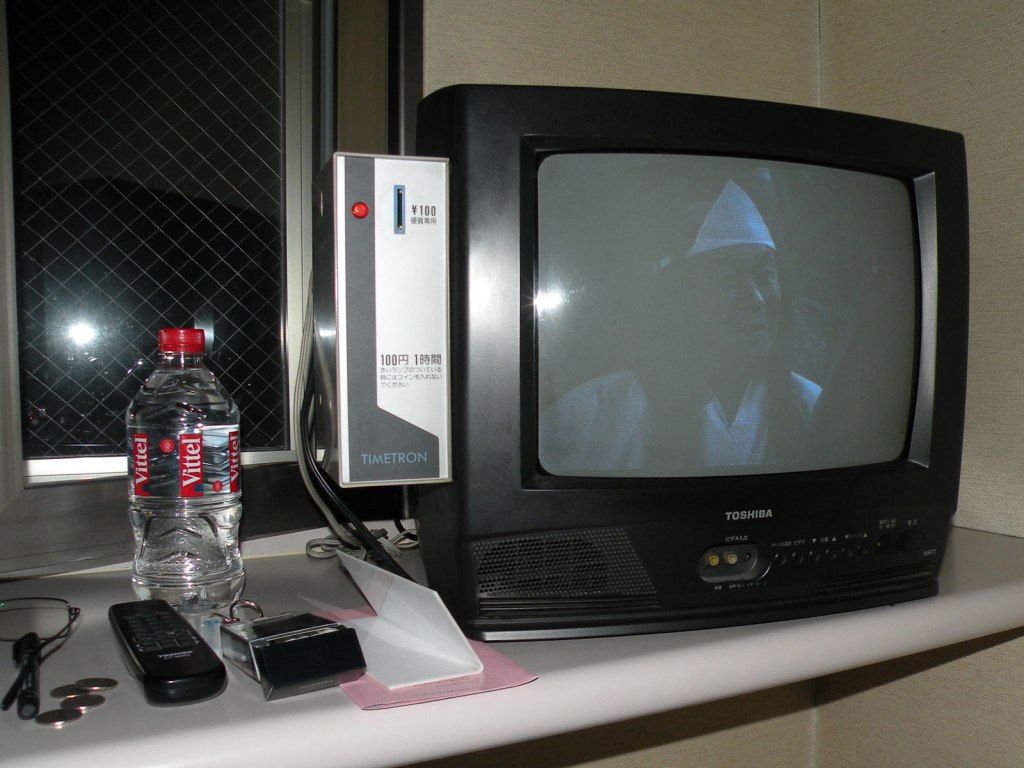 Se face ora 7 dimineața, eu deja obosit, mă îmbrac frumos și cobor, cu scopurile de: la recepție să reclam televizorul defect și la magazin după încă o cafea. La recepție mi se zâmbește frumos și mă lămuresc în final, după explicațiile primite într-o engleză aproximativă, cum că cutia lipită pe televizor are rolul de a primi 100 de yeni (aproximativ 1 dolar) introduși în fanta din față, după introducerea monedei (nu merge cu alte monede sau cu bancnote împăturite și vârâte acolo!) am acces la Tv timp de 59 de minute și 59 de secunde. Dacă nu vâr instant altă monedă, gata, switch – off, stingerea! Îmi cade mandibula, și cu ea bălăngănindu-se mă îndrept spre magazinul ”7 – Eleven”. După cafea, bere, și alte bucurii care să mă scoată din șoc.