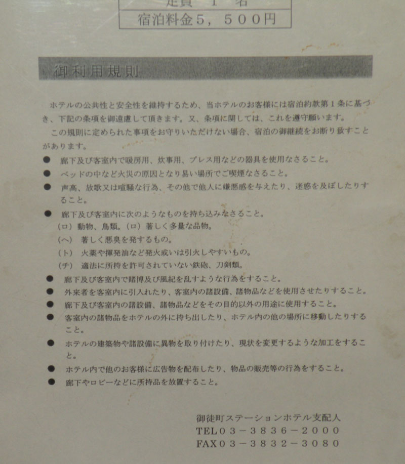 Până la hotel facem circa 10 minute, eu privind în jur cam ca ”râma la sudură” și rotind capul ca girofarul, iar Watanabe san sporovăind sacadat și cu mari dificultăți în a-și găsi cuvintele despre programul zilelor următoare. Rețin din ce-mi spune doar că mâine la 9 dimineața trebuie să fiu la Clinica de Yumeiho. Uimirea mea se datora faptului că drumul de la clinică la hotel traversa Ame Yoko Cho, cel mai mare Bazar din Tokyo. Despre Ameyokocho în altă relatare.