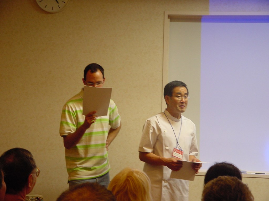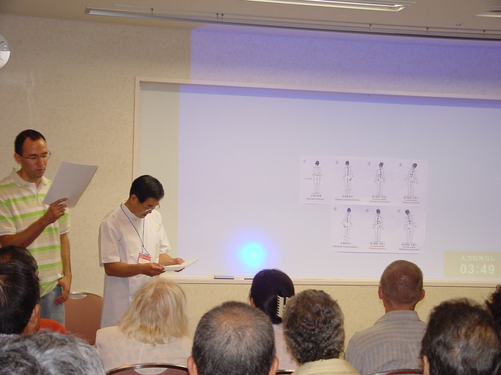 După ce aflu vestea mă simt cam ca aseară, pierdut total și panicat. Evident din motive cu totul și cu totul diferite. Nu aveam nici cea mai vagă idee în ce ar putea consta examenul. Prea ocupat cu Japonia, Tokyo, cele relatate în precedentele scrieri uitasem complet de examen și nu-i trecuse prin cap să întreb vre-ul coleg despre ”ce și cum”. Mă igienizez, mă îmbrac în samue-ya și-mi fac canonul de rugăciune. (pentru prima dată de când am plecat de acasă! Cum ne amintim de Dumnezeu doar la greu!). Plec, cam cu viteza melcului trăznit, spre clinică. Este ora 9 a.m. Shigeru Sensei vine la ora 10 a.m. Normal că pe drum mă gândesc la examen, la Yumeiho. Care, ce-i Yumeiho? Uitasem deja de Yumeiho. Pentru prima dată în cei 14 ani de la debut! Până la liftul de la clinică ajunsesem să mă resemnez. Asta e! Măcar am văzut Japonia, chiar dacă mă fac de toată rușinea la examen! Intru în Clinică și stau cuminte într-un colț așteptând, fără nerăbdare, să vină Șeful! Intră Șefu, Za-Rei de rigoare, mă prezint precum cere protocolul, zic că-s bucuros că ne vedem prima dată, (zic ce zic într-o Japoneză impecabilă spre propria mea surpriză!). Hashimoto Shigeru Sensei mă întreabă dacă totul este bine și dacă sunt pregătit de examen, aș vrea să-i răspund că totul este bine dar că m-am ”c..at pe mine de emoții” (la figurat desigur, din fericire!). Gura zice doar; da, sunt bine, mulțumesc! Și … vine surpriza! Îmi spune că examenul este doar o formalitate, că am deja garantat 6 Dan (gradul 6) dăruit ca recompensă pentru truda mea cu dezvoltarea Yumeiho în Europa și că examenul va consta în: ”eu îți fac o ședință de Yumeiho și apoi tu îmi faci o ședință de Yumeiho”. Eu m-am blocat complet! În loc să mă simt ușurat, fără griji, totul este bine. Mă trec la tricou, aterizez pe tatami (saltea) și mă dau pe mâinile maestrului. M-a ”procesat” temeinic, rapid și eficient, mai mult de o oră. Jumătate din ce mi-a făcut mi s-a părut altceva decât ceea ce făceam eu sub numele Yumeiho. În consecință, mi se pare clar că mă voi face de rușine, cu sau fără Danii aferenți, primiți onorific. Piși, caca, o gură de apă și trec la treabă. La mine durează ceva mai mult ședința, pentru că mă strofoc din răsputeri să fac ce pot mai bine. La final se ridică Șefu, vizibil relaxat, și, precum sunt, adică ”gaijin” nepoliticos dar curios, întreb cum m-am descurcat?!. Zice ”dai-jobu, dai-jobu desu”, adică, a fost în regulă, dar nu pot ști dacă o spune doar conform regulilor imuabile de politețe Japoneză sau chiar a fost bine. Nu insist, nu cer explicații și lămuriri, că-i mare rușine la obraz să faci asta! (sfat de la Master Chef (Șef) restaurant românesc, printre alte foarte utile sfaturi!!) Trecem la ceremonia de înmânare a diplomei de 6 Dan, spre relativa mea surpriză era deja completată cu numele subsemnatului, și datată corespunzător, de către Watanabe san (după cum am aflat ulterior). Facem și poze. Mă laud cu una mai sus.