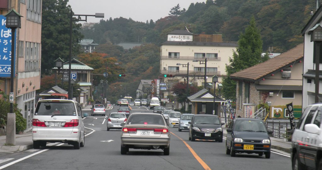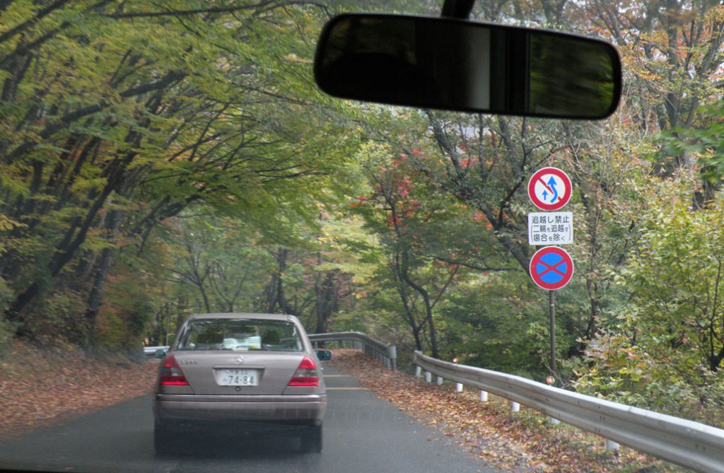 Dacă nu ar fi fost disciplina în trafic (incredibilă!), asfaltul, parapeții și semnalizarea rutieră toate impecabile, curățenia și unele mașinuțe nemaivăzute aș fi putut crede că-s pe drumul de la Brad la Câmpeni la noi la Moți. M-a impresionat faptul că deși era o șosea dedicată exclusiv pentru urcare și altă rută/șosea exclusiv pentru coborâre, ambele având câte două benzi de trafic, nimeni nu depășea! Mi-am dat seama că banda 2 era dedicată serviciilor de urgență (ambulanțe, poliție, pompieri și altele asemenea). Inițial nu am înțeles de ce pe măsură urcam aveam tot mai dese și mai lungi perioade de stat opriți în coloană. La sosire am văzut că se permitea accesul în rezervație doar în limita locurilor de parcare disponibile. Erau parcări imense, gestionate de angajați impecabili, care comunicau numărul de mașini care pot intra în zonă în funcție de locurile de parcare disponibile. Problema era creată mai ales de autocarele cu turiști. Lăsau pasagerii și plecau în altă parte la parcat. Noi așteptam. Mi-mi convenea. Opriți fiind puteam admira peisajul mai bine. Să nu ne plictisim făceam vrând – nevrând conversație. Fiica lui Shigeru Sensei știa puțină engleză astfel încât completa pe Watanabe san care obosise de tradus din Esperanto.
