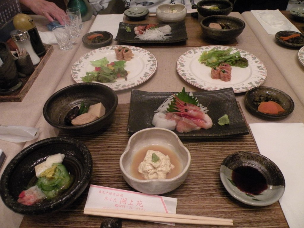 Am avut și niște ”mici” incidente la masă. Unul ar fi cel în care încrezător în experiențele mele culinare anterioare am luat pe bețe (Hashi) o cantitate semnificativă de Wasabi (o rudă japoneză a hreanului) iar când Shigeru Sensei a spus: nu face asta! pericol! Eu am răspuns: sunt obișnuit cu Wasabi, mănânc și în România. Și l-am băgat la mestecău. După 10 de secunde, cine moare nădușit tot, roșu-vinețiu la față? (oglindă am avut vis-a -vis de mine!). Am simțit că mi se scurg creierii pe urechi, că nasul s-a topit și am lavă de vulcan activ în gură, la propriu, nu glumesc! Tot Shigeru Sensei m-a salvat, cu o sticlă de Sake înmânată pentru a spăla ”otrava” din gură și de pe gât. N-a mai avut timp să toarne în pahar! Risca să aibă pe conștiință un gaijin!. Transpirat leoarcă, cu mucii atârnându-mi pe mustață și lacrimile curgând șiroaie pe obraz mă duc la toaletă să-mi spăl obrazul și mucozitățile. Mă văd în oglindă, dacă n-aș fi așa roșu la față aș arăta ca o bocitoare profesionistă din Ferentari – B.! După igienizare ies în pragul hanului și las vântul să-mi reducă temperatura corporală la normal, revin la masă. Cam ud. De la ploaie zic eu, de la spălătoare cred ceilalți.
