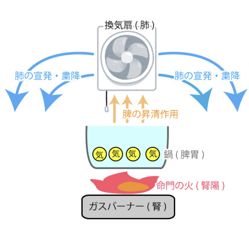 Focul inimii încălzește apa rinichilor iar plămânii asigură ”răcorirea – ventilația”
